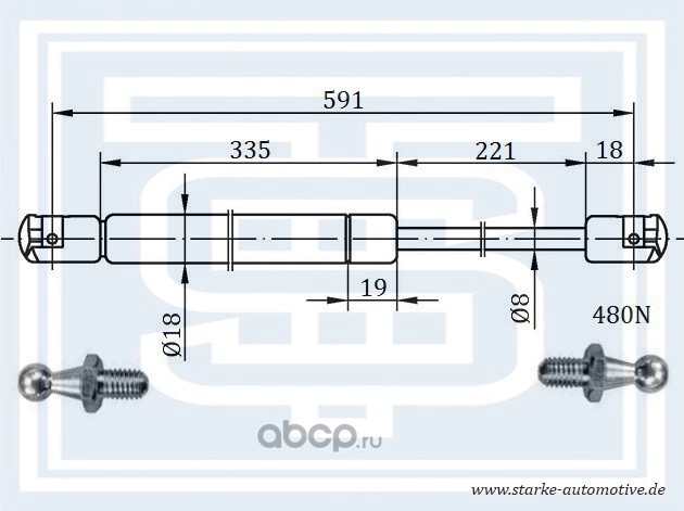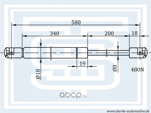Амортизатор багажника MAZDA 6 (GG) Hatchback --08.2007 L=580mm / 480N
