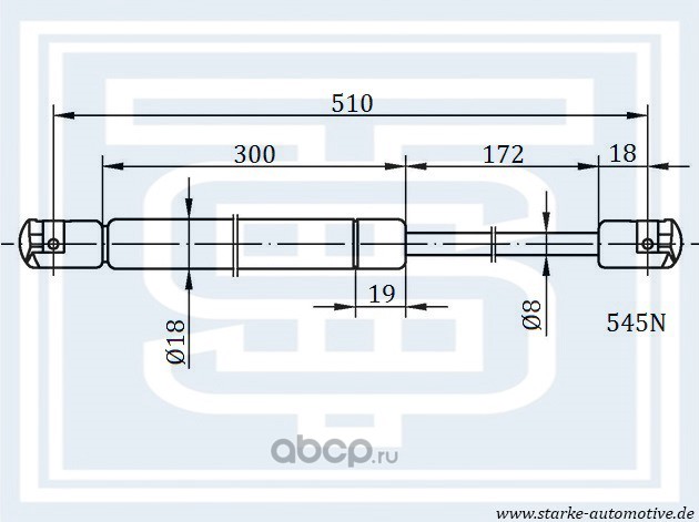 Амортизатор багажника TOYOTA COROLLA (E12) Verso --05.2004 L=510mm / 545N