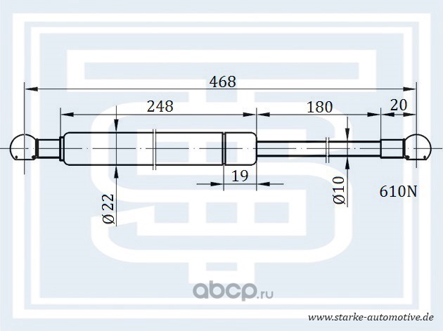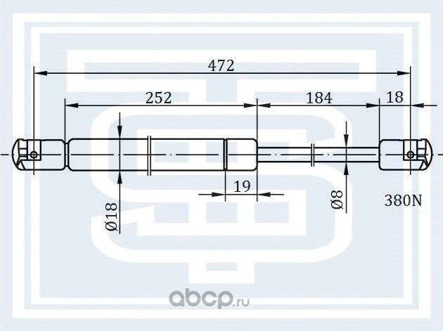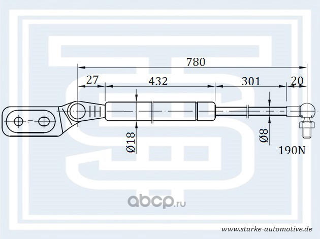 Амортизатор багажника KIA SHUMA I-II L --08.2004 L=782mm / 190N