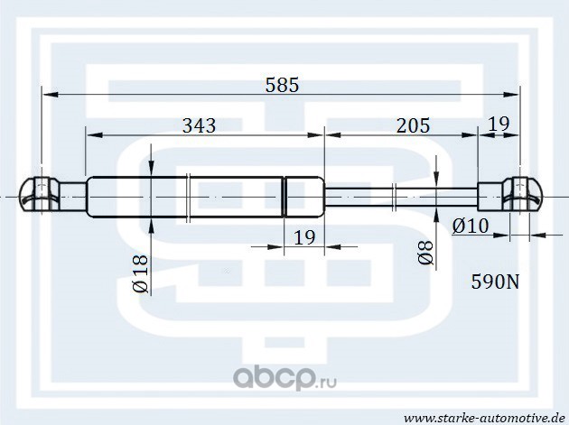 Амортизатор капота HYUNDAI ACCENT II --11.2005 L=585mm / 590N