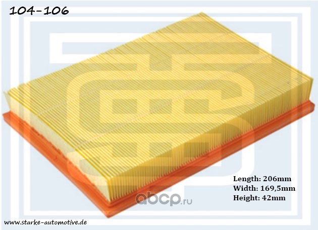 | STARKE | 104106 | Фильтр воздушный CITROËN XSARA / PEUGEOT 206 1,4i-1,6i | ||