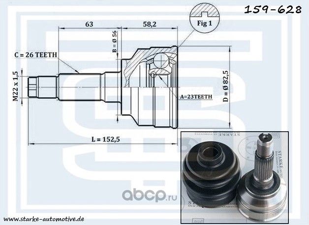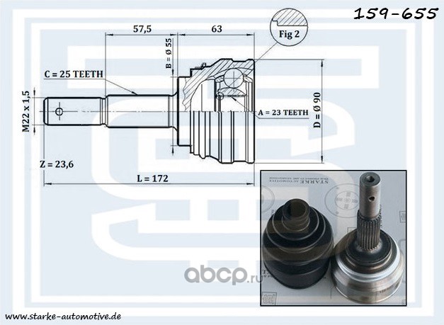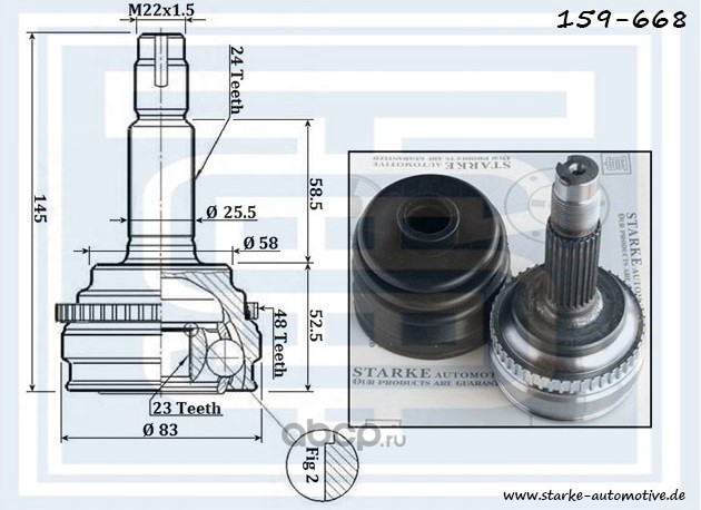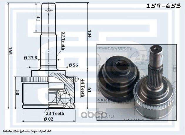 | STARKE | 159627 | ШРУС MAZDA 6 (GG) --08.2007 с ABS | ||