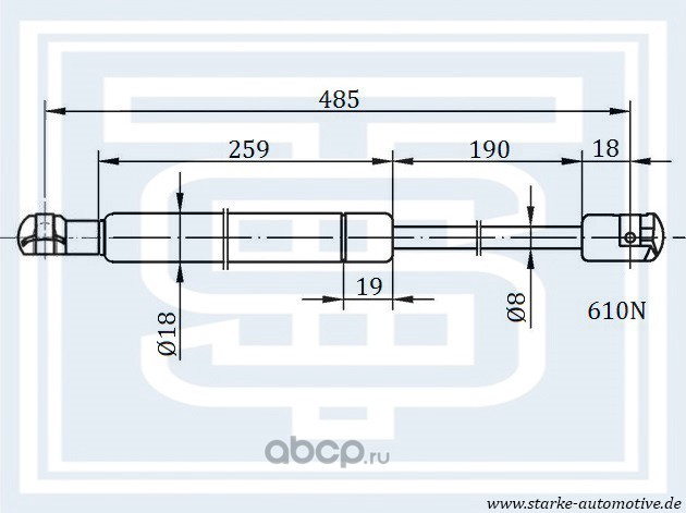 | STARKE | 188038 | Амортизатор багажника HYUNDAI ix35 / ELANTRA L=485mm / 610N | ||