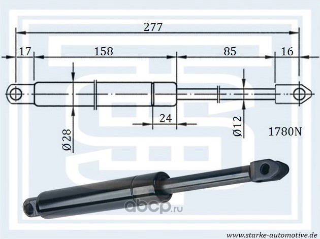 | STARKE | 182109 | Амортизатор багажника MER S124 --06.96 L=277mm / 1780N | ||