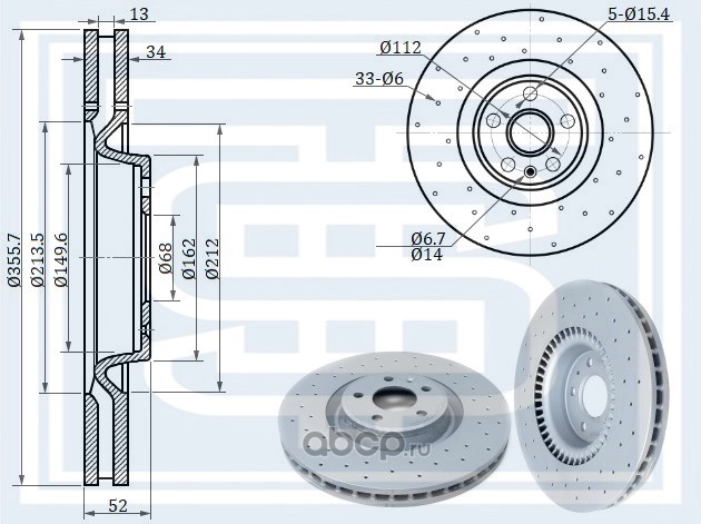 | STARKE | 173930 | Диск тормозной перед. AUDI A6 (4G) / AUDI A8 (4H) торм.сист. 1LL/1LF с перфорацией 356x34 | ||