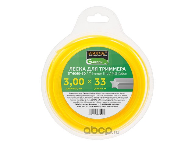 | STARTUL | ST606030 | Леска ф 3.0 мм х 33 м "звездочка" GARDEN | ||