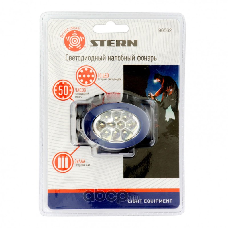 Фонарь наголовный, светодиодный, 3 режим, 10 Led, 3 х ААА Stern