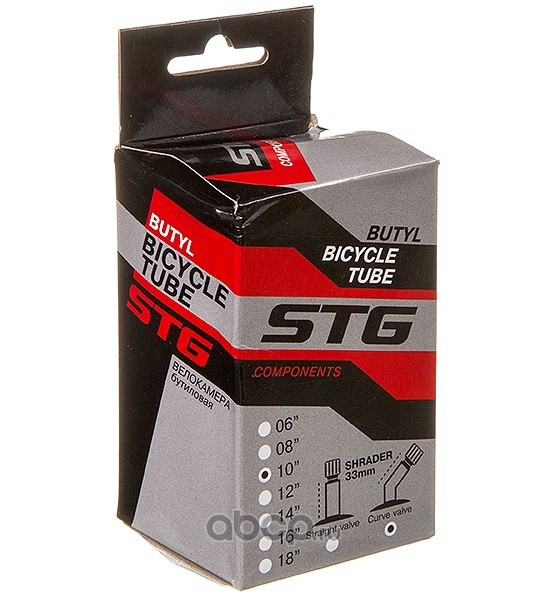 Камера велосипедная STG, бутил,10Х1,95/2,25, изогнутый автониппель 33мм (упак.: коробка)