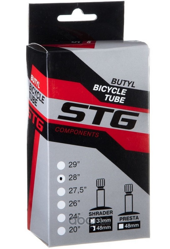 Камера велосипедная STG, бутил ,28Х1,75/1,95 ,автониппель 48мм (упак.: коробка) STG