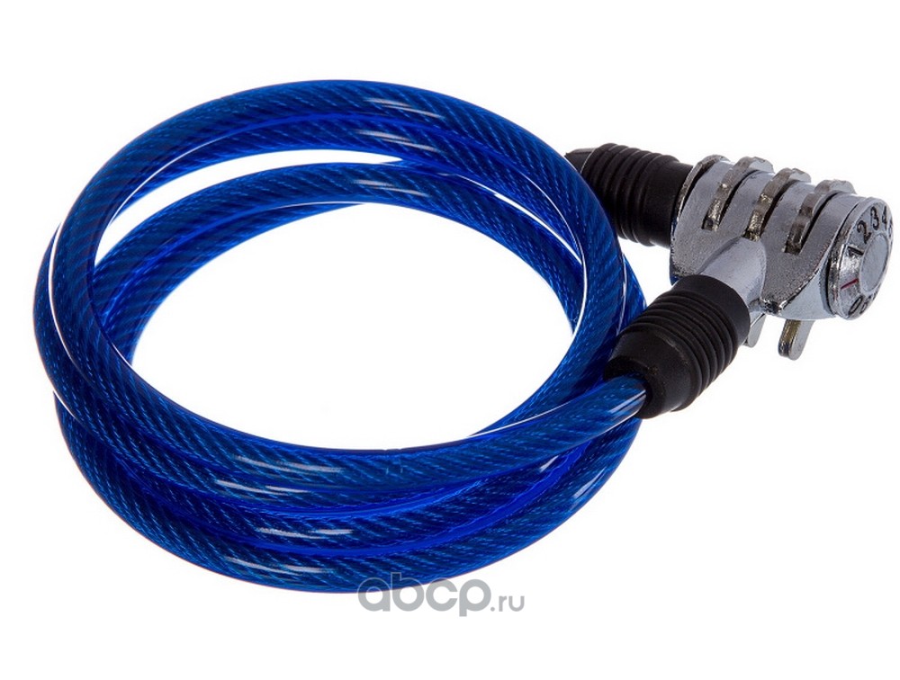 Замок, трос спиральный, кодовый диам.6х100см синий