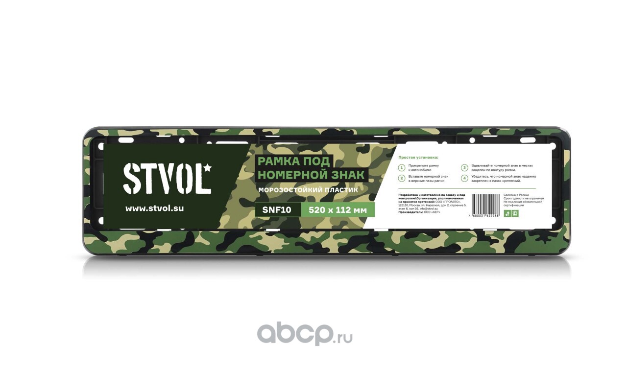| STVOL | SNF10 | Рамка под номерной знак камуфляж «Амёба», зелёный, книжка | ||