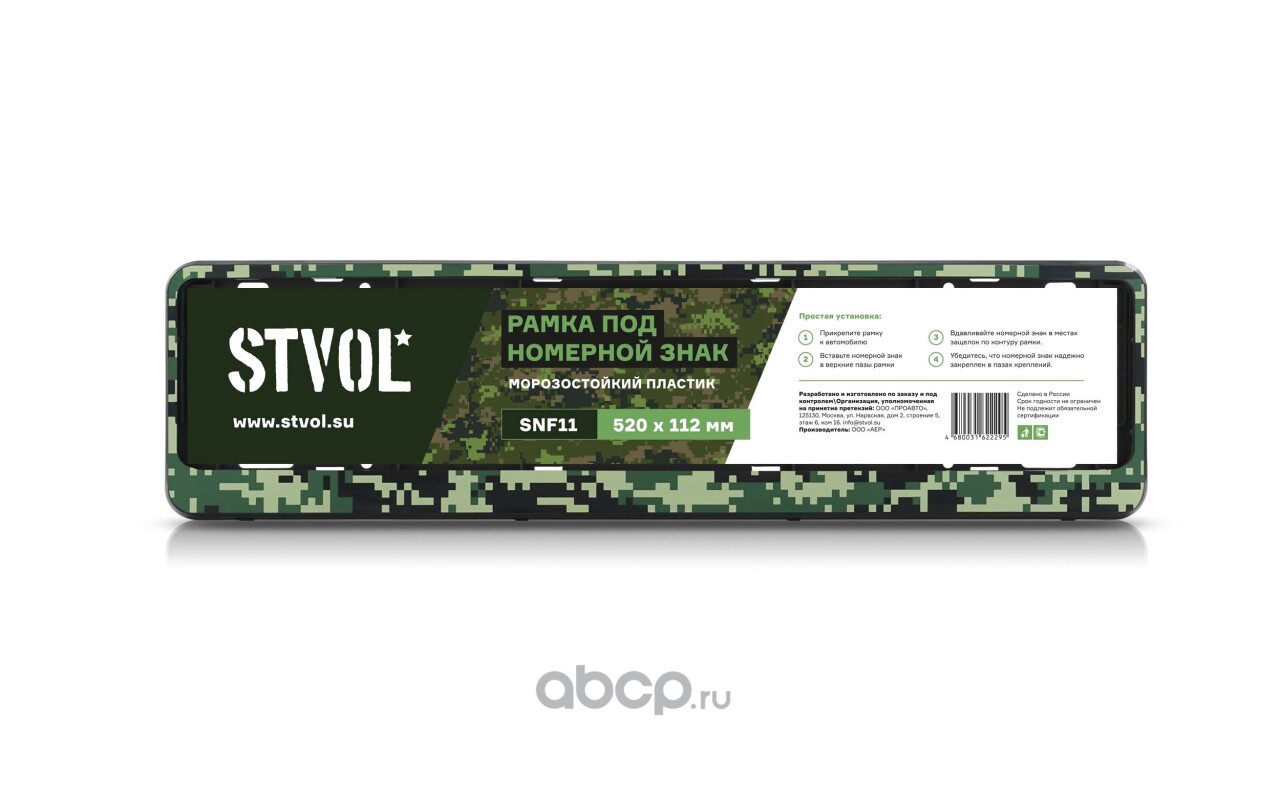 | STVOL | SNF11 | Рамка под номерной знак камуфляж «Пиксели», зелёный, книжка | ||