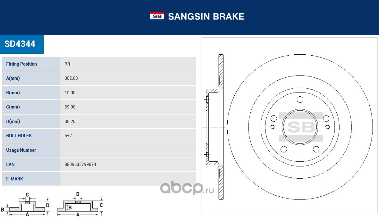 | Sangsin brake | SD3034 | ДИСК ТОРМОЗНОЙ | ||