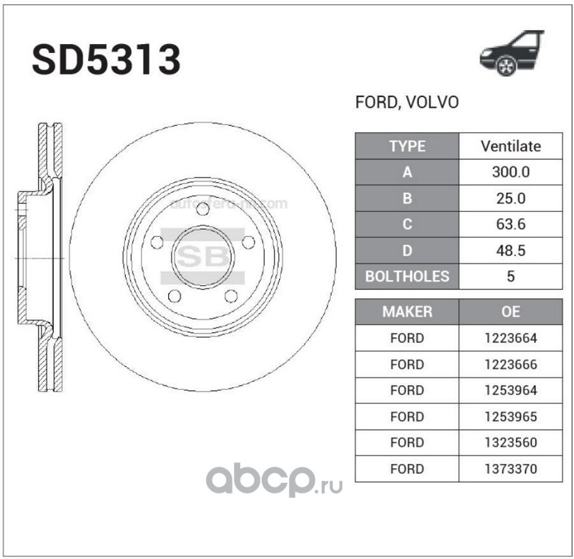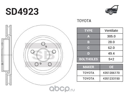 | Sangsin brake | SD4923 | Диск тормозной | ||