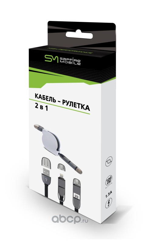 | Sapfire | SAM0937 | SAM-0937 Кабель рулетка 2 в 1 с разьемом USB, micro USB, 8 PIN, Micro SAPFIRE Mobile | ||