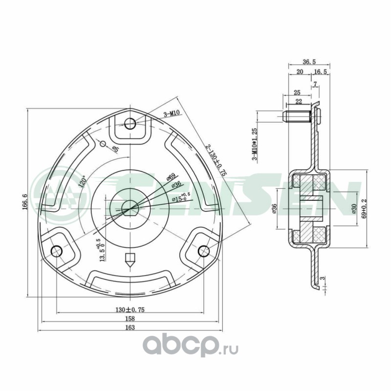| Sensen | M61094 | Опора амортизатора переднего (без подшипника) для а/м RENAULT: FLUENCE 10- MEGANE III | ||
