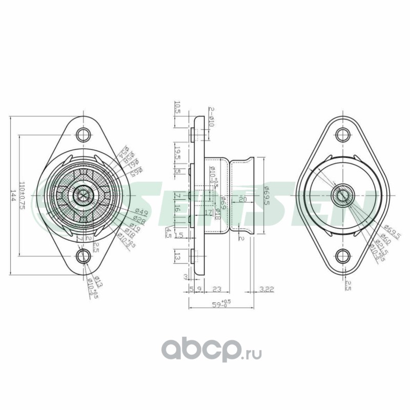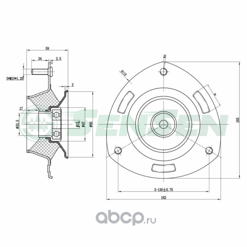 | Sensen | M61085 | Опора амортизатора (без подшипника) для а/м CITROEN C3 09- PEUGEOT 208 12- | ||