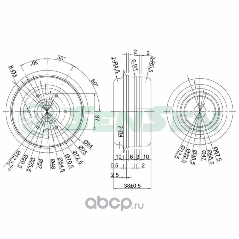 | Sensen | M61084 | Опора_амортизатора переднего для а/м верхн Audi A4/A6/A8 (все) 95- | ||