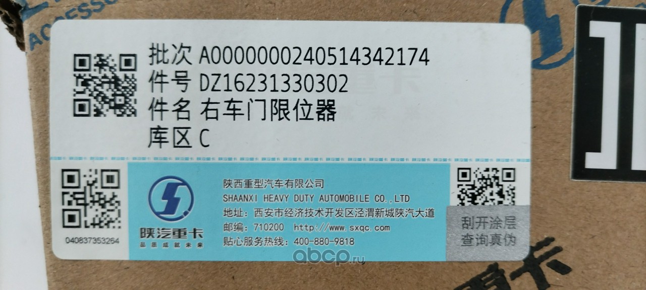 | Shacman | DZ16231330302 | Ограничитель положения двери правой | ||