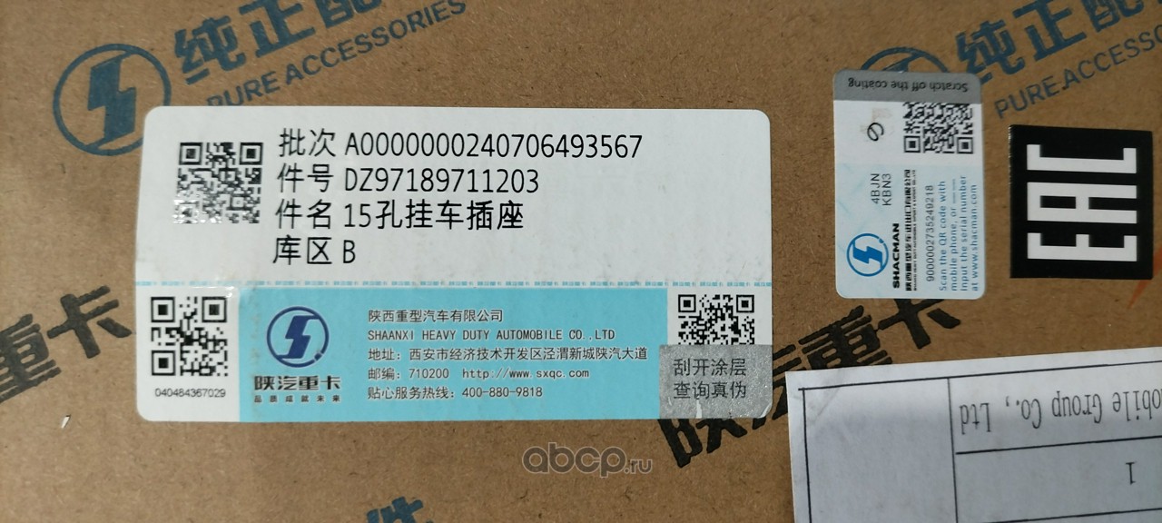 | Shacman | DZ97189711203 | Розетка для прицепа (15 контактов) | ||