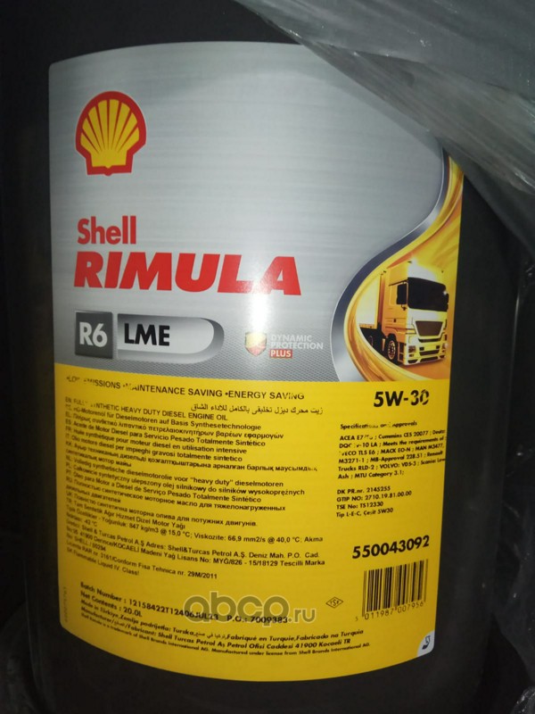 | Shell | 550043092 | Масло моторное синтетика SHELL Rimula R6 LME 5W-30 20л. | ||