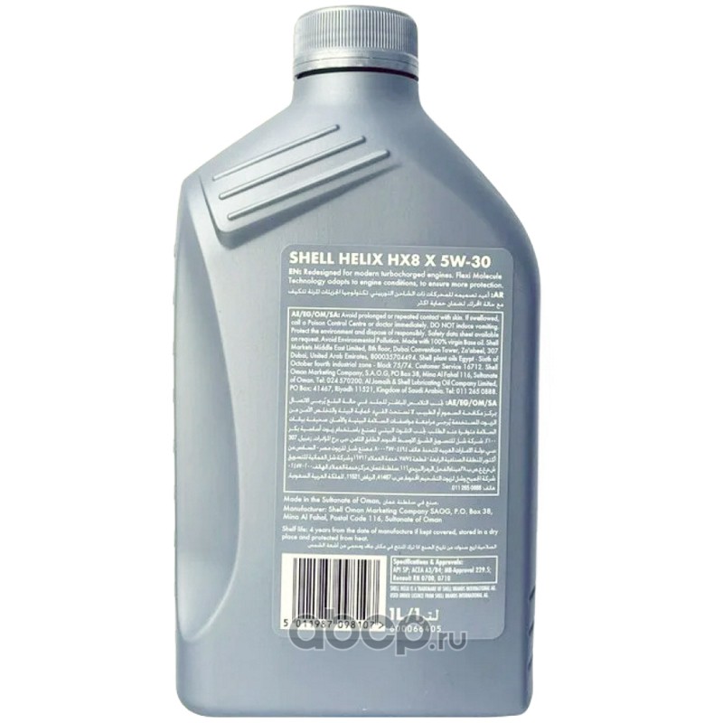 | Shell | 550061564 | Масло моторное синтетика Shell Helix HX8 X 5W-30 1 л. | ||
