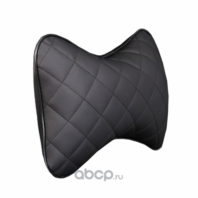Подушка-косточка Siger на подголовник автомобиля гладкая экокожа ромб (черная)