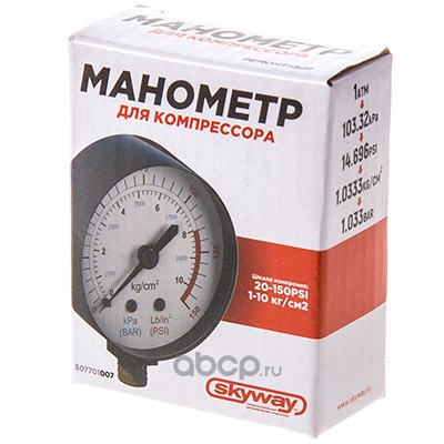 | Skyway | S07701007 | Манометр SKYWAY для компрессора ТОРНАДО 10,2 АТМ | ||