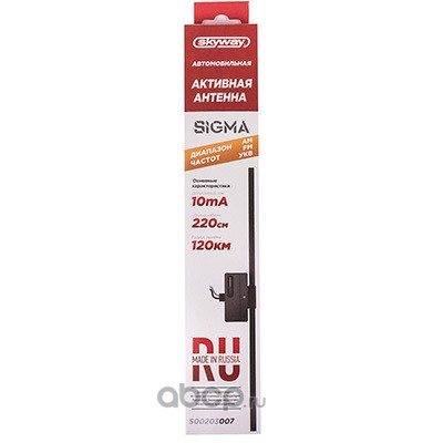 | Skyway | S00203007 | Антенна FM активная внутрисалонная SKYWAY SIGMA прямоугольная кабель 220см Черный | ||