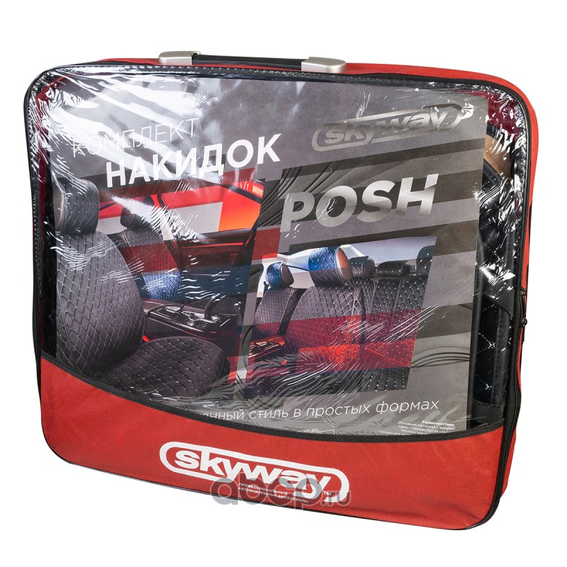 Накидка сиденья вельвет 5 предм. SKYWAY POSH Черная/белая строчка
