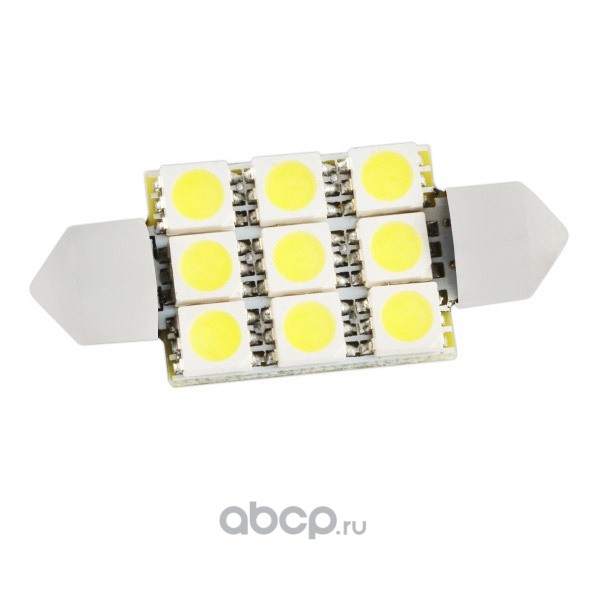 Автолампа диод T11(C5W) 12V 9 SMD диода c цоколем 1-конт 39мм Белая SKYWAY Cалон,номер min 2