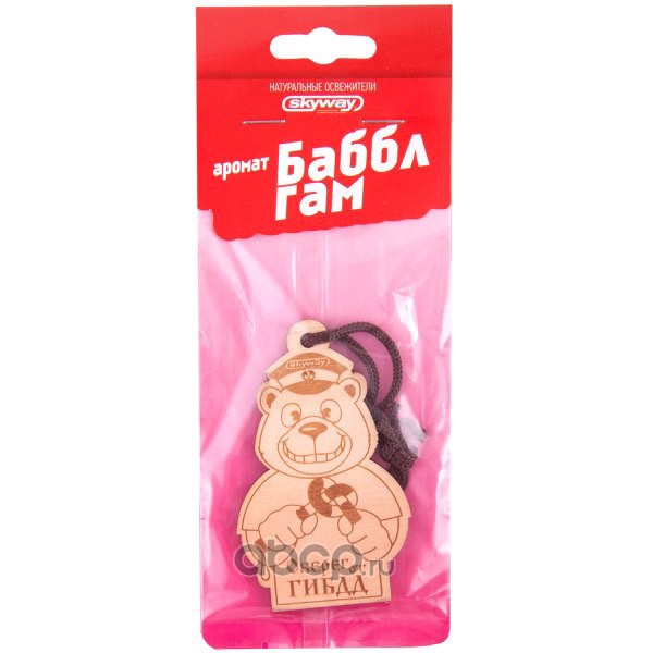 Ароматизатор подвесной деревянный SKYWAY Медведь ""Оберег от ГИБДД"" Баббл гам