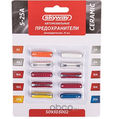 | Skyway | S09303002 | Предохранитель керамический цилиндрический набор 10шт 5-25А блистер SKYWAY | ||