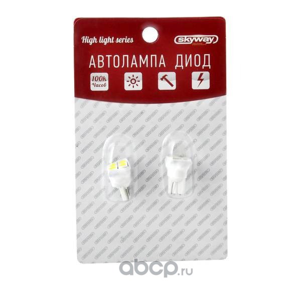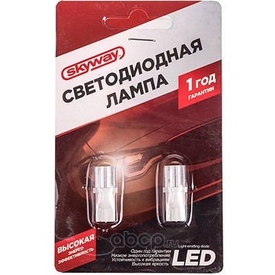 Автолампа диод T10(W5W) 12V 1 SMD Блистер без цоколя 1-конт Белая SKYWAY Габариты, номер, салон