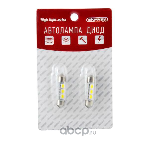 Автолампа диод T11(C5W) 12V 3 SMD Блистер с цоколем 1-конт Белая SKYWAY Cалон,номер