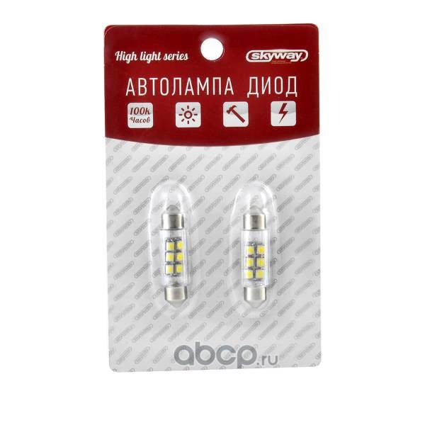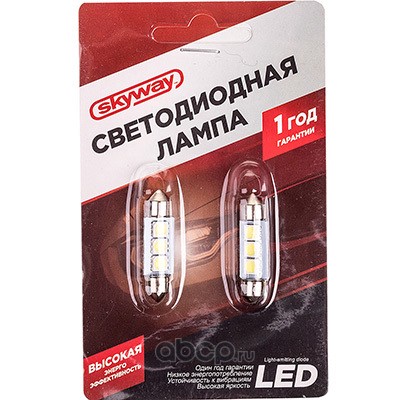 Автолампа диод T11(C5W) 12V 6 SMD Блистер c цоколем 39мм 1-контактная Белая SKYWAY SJTG-6SMD-3528-3