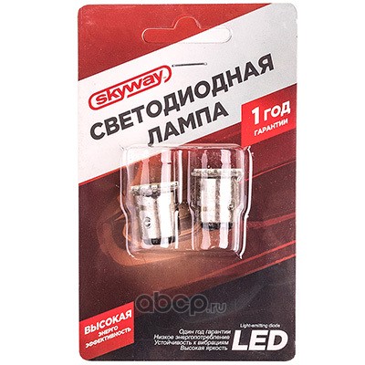 Автолампа диод S25/5(P21/5W) 12V 22 SMD Блистер с цоколем 2-контактная Белая SKYWAY Габариты-стопы 2шт