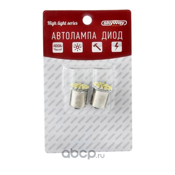 Автолампа диод S25 (P21/5W) 12V 22 SMD Блистер с цоколем 2-конт Белая SKYWAY компл. 2 шт. Габариты, стопы, поворот