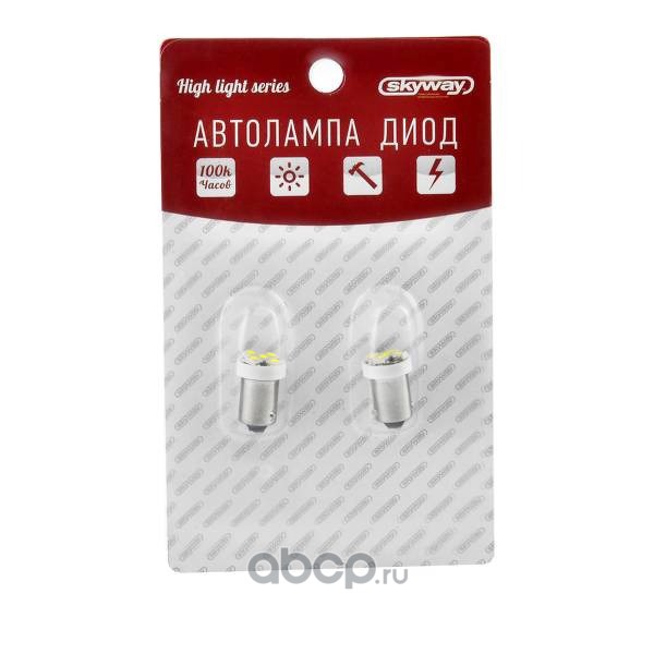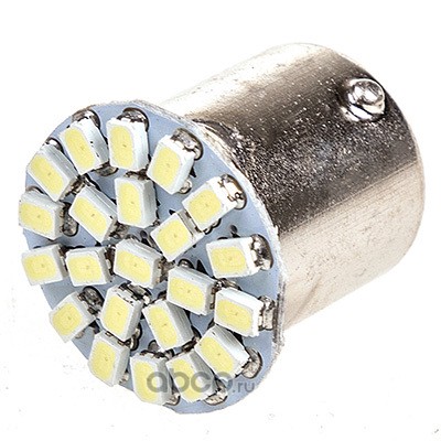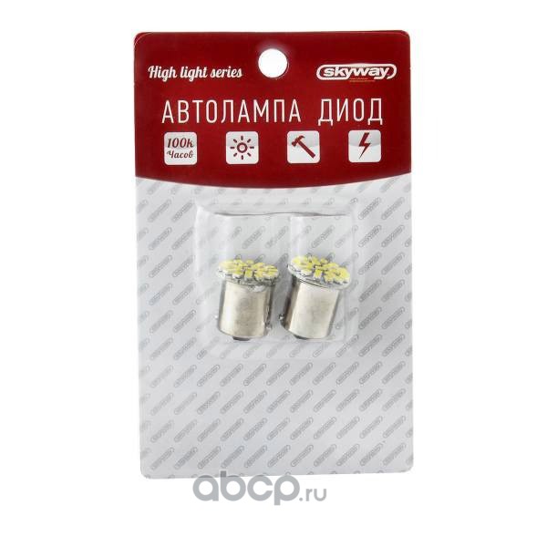 Автолампа диод S25(P21W) 12V 22 SMD Блистер с цоколем 1-контактная Белая SKYWAY Габариты, стопы, поворот, задние противотуманные фары, фонари заднего хода 2шт