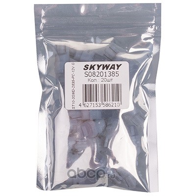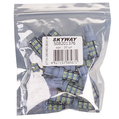 Автолампа диод T10(W5W) 12V 28 SMD диодов без цоколя 1-конт Белая SKYWAY Салон, номер