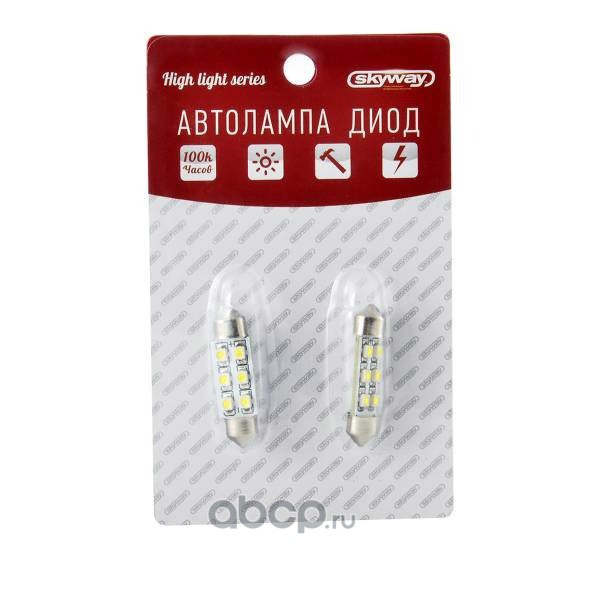 Автолампа диод T11(C5W) 12V 6 SMD Блистер c цоколем 39мм 1-контактная Белая SKYWAY SRS-1263B 39MM