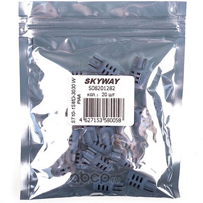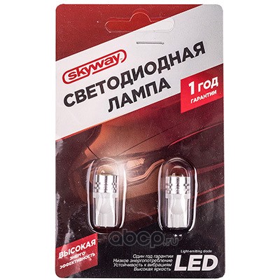 Автолампа диод T10(W5W) 12V 1SMD диод 1-конт Белая SKYWAY Салон, габариты, номер, стопы