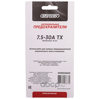 | Skyway | S09302005 | Предохранитель флажковый MEDIUM набор 10шт 7,5-30А блистер SKYWAY | ||