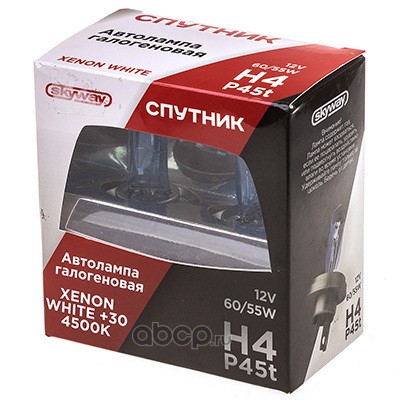 | Skyway | S09101042 | Автолампа H4 12V 60/55W P45t 2-конт XENON WHITE+30 1800/1200Лм 4600К СПУТНИК SKYWAY 2 шт | ||