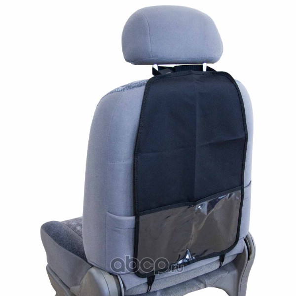 Защита спинки сиденья-органайзер SKYWAY ПВХ с карманом Черная