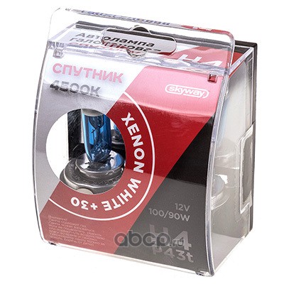 Автолампа H4 12V 100/90W P43t 2-конт XENON WHITE+30 1500/900Лм 4600К СПУТНИК SKYWAY 2 шт