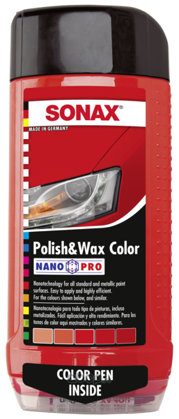 | Sonax | 296400 | Цветной полироль с воском + карандаш, красный ""Nano Pro"", 500мл | ||