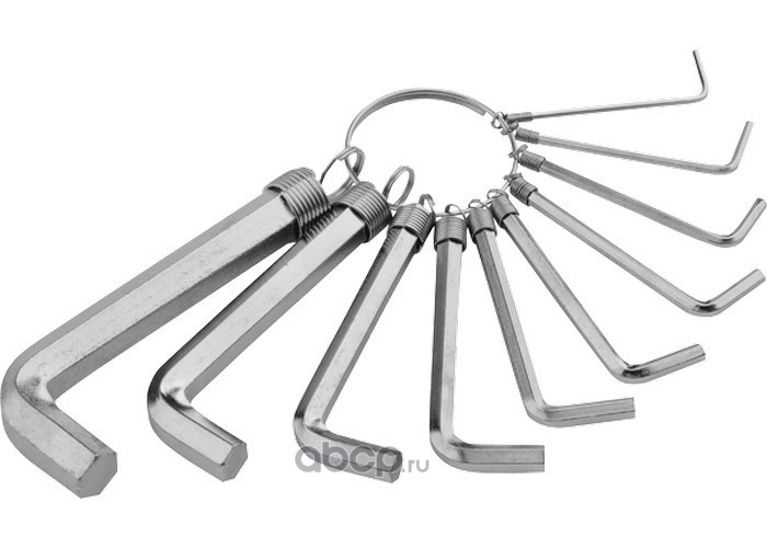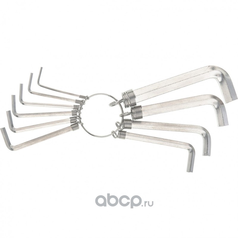 Набор ключей имбусовых HEX, 1.5-10 мм, CrV, 10 шт, никелированный, на кольце Sparta