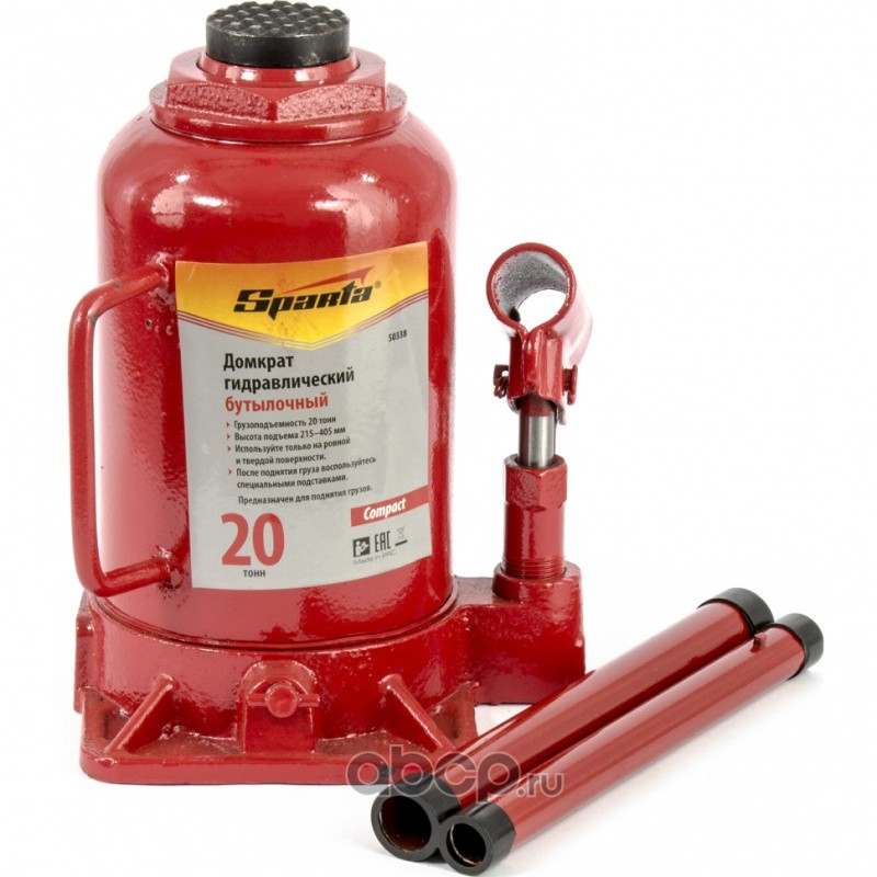Домкрат гидравлический бутылочный 20 т, h подъема 215-405 мм Sparta Compact