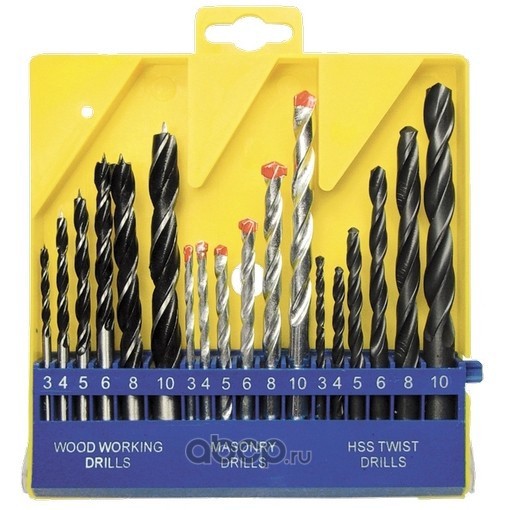 Набор сверл по бетону, металлу, дереву 3-4-5-6-8-10 мм, 18 шт, пластиковый бокс, цилиндрический хвостовик Sparta